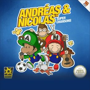 FRA – Chanson Française HumoristiqueAndréas & Nicolas est un groupe de chanson française humoristique formé en 2006 à Nantes. Leurs "super chansons" se caractérisent par leur côté loufoque et absurde et leur chute souvent inattendue… Vite repéré sur Myspace, le duo donne son premier concert le 15 juillet 2007 sur la scène ouverte des Francofolies de La Rochelle. Il participe au festival Juste Pour Rire en 2008 et à l'édition 2009 du Hellfest. Le groupe (Andréas, Nicolas et leur "Singe Batteur") a depuis effectué plus de 150 concerts en France, en Suisse, en Belgique et au Québec. Entre pastiches et humour absurde, l'originalité du groupe tient entre autres à sa capacité d'invention et d'improvisation : plus de 300 chansons composées, certaines ne dépassant pas les 10 secondes… Après la production en 2007 d'une démo intitulée 7 Super Chansons, le premier album d'Andréas & Nicolas, baptisé Super Chansons est sorti le 15 novembre 2010. Sur la version CD, des chansons bonus peuvent être débloquées en jouant à Singe Facteur, un jeu vidéo PC qui reprend tout l'univers du groupe : bestiaire, mélodies, personnages réels mythifiés ou personnages inventés, etc… Leurs titres « Boulangerie-Pâtisserie » et « Je collectionne des canards (vivants) » ont été popularisés par les versions du groupe Ultra Vomit dont Nicolas est le chanteur sous le pseudonyme Fetus. Outre des clips, le groupe publie régulièrement sur le Web des sketchs vidéos parfois sous forme de série comme "Poussin Agression" ou encore "Bonsoir Monsieur !".